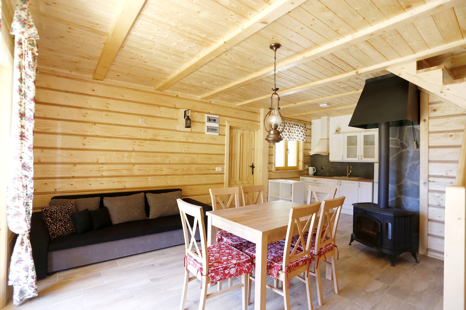 W domku znajduje się łazienka z wc, 3 pokoje, kuchnia. W środku znajduje się kominek, telewizja i internet. Domek w góralskim klimacie. Wygodny dla pobytu do 6 osób. Cena za dobe: od 450zł. Doba zaczyna się od godziny: 16:00 (dnia przyjazdu) do godziny 10:00 (dnia wyjazdu).