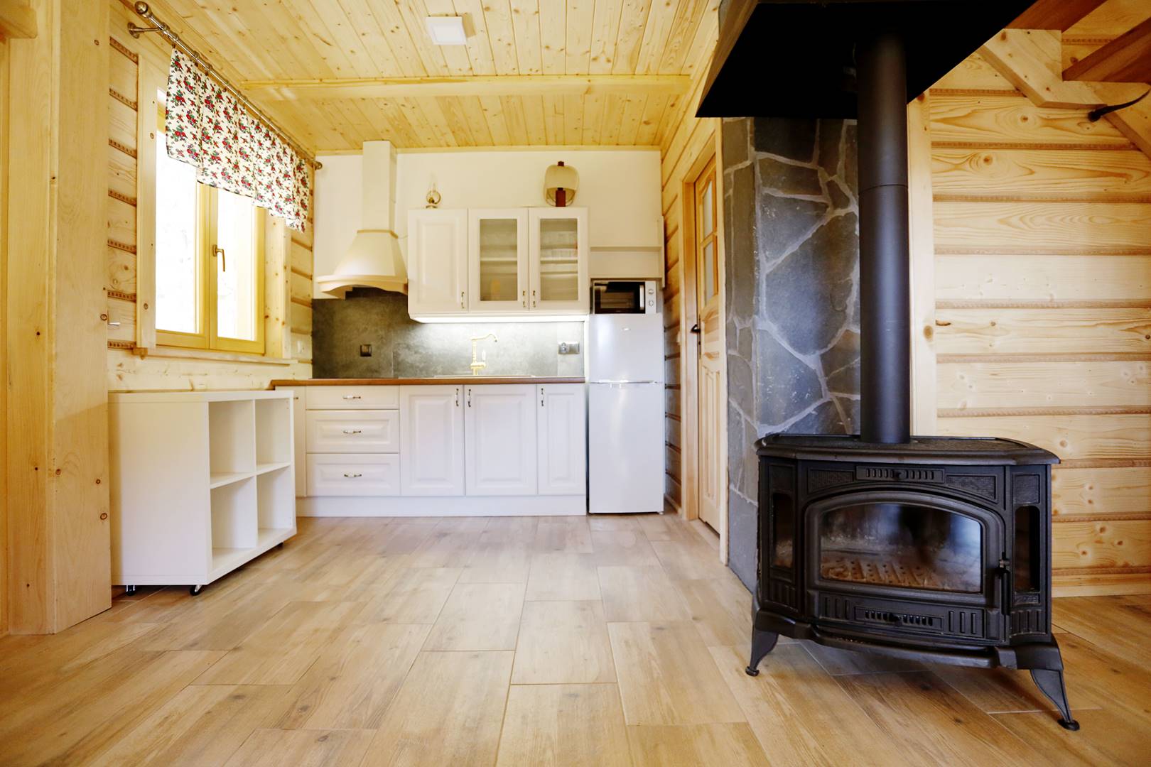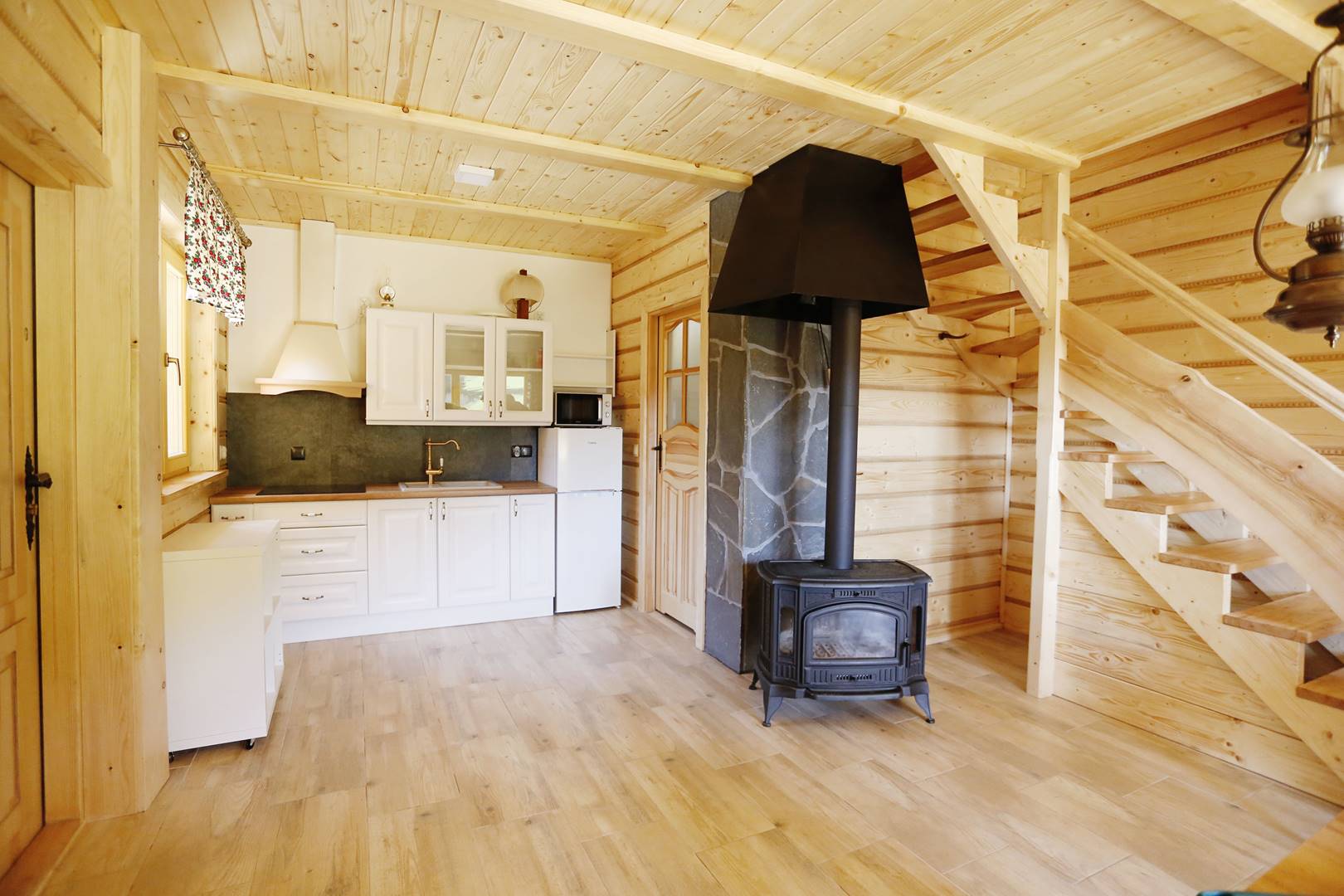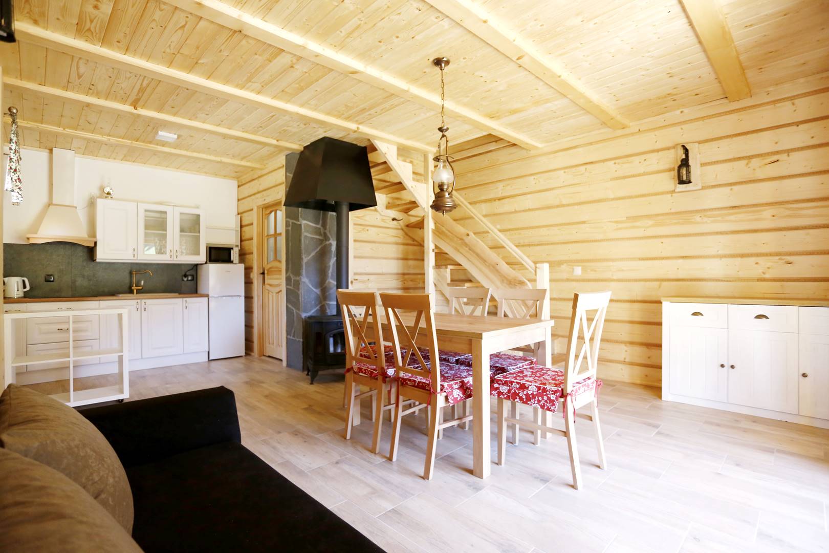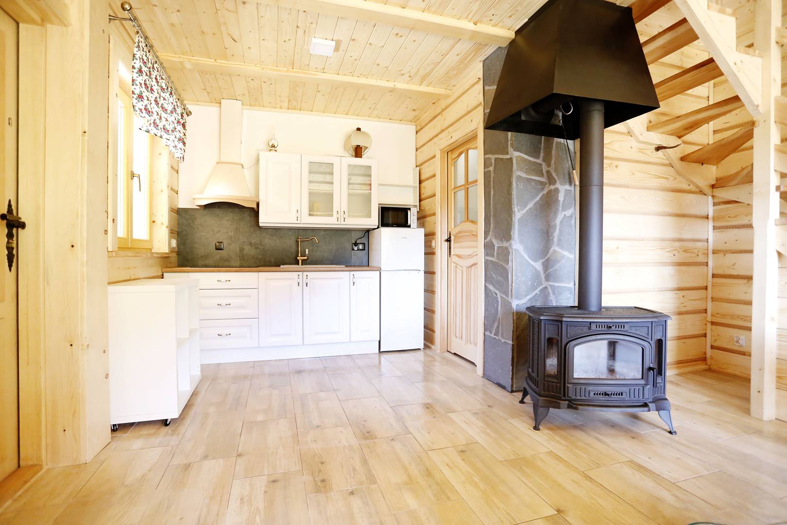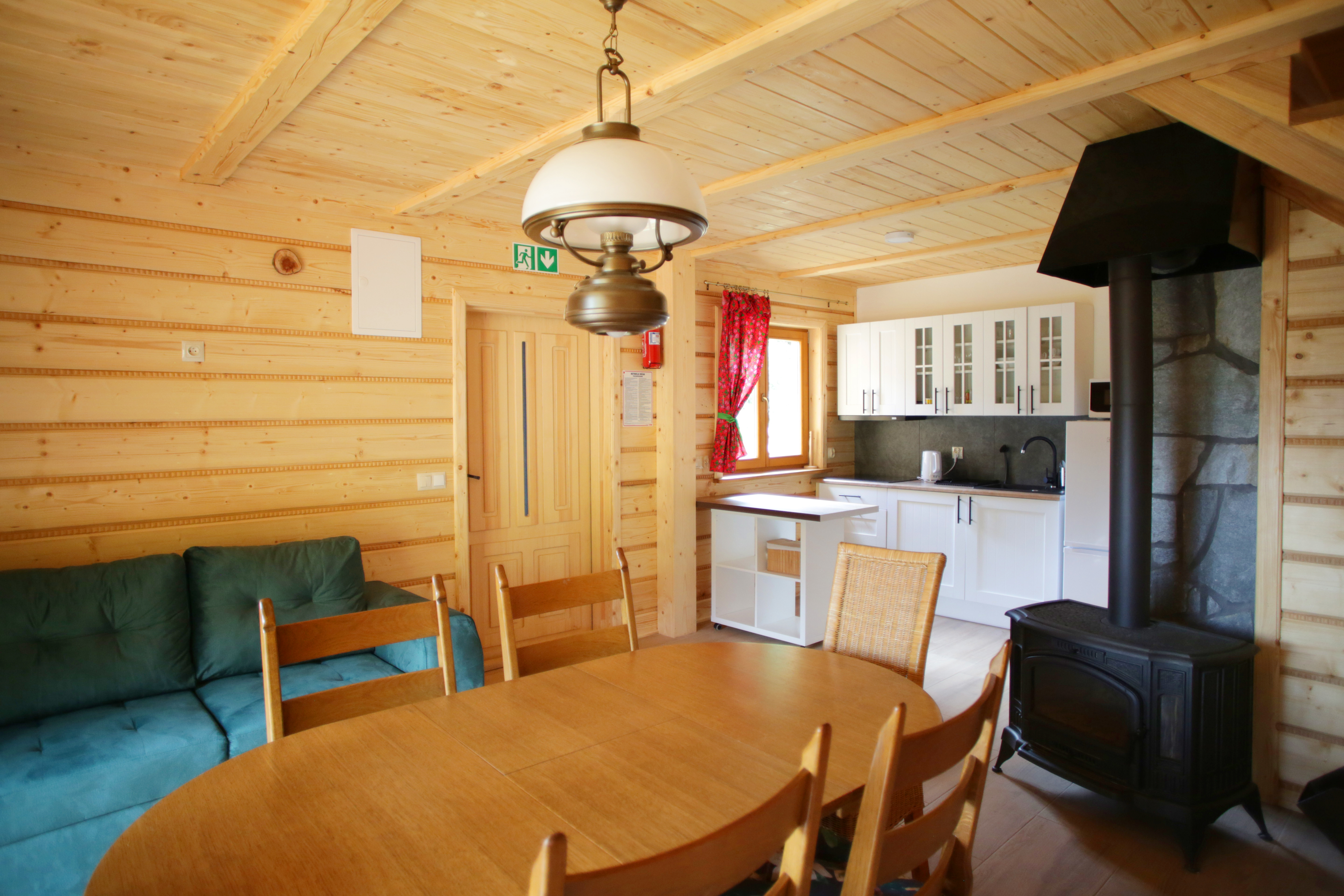 Oferujemy dwa nowe domki. Rok budowy domków 2021. W każdym domku znajduje się kuchnia z aneksem, łazienka z wc, dwa pokoje (4-osobowe i 2-osobowe). W środku znajdują się kominki, telewizja i internet. Wygodny dla pobytu do 6 osób. Cena za dobe: od 450zł. Doba zaczyna się od godziny: 16:00 (dnia przyjazdu) do godziny 10:00 (dnia wyjazdu).