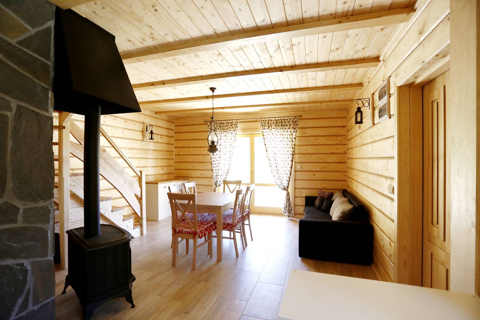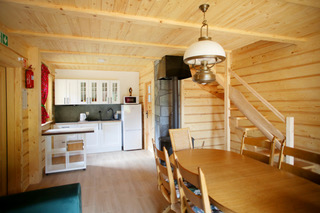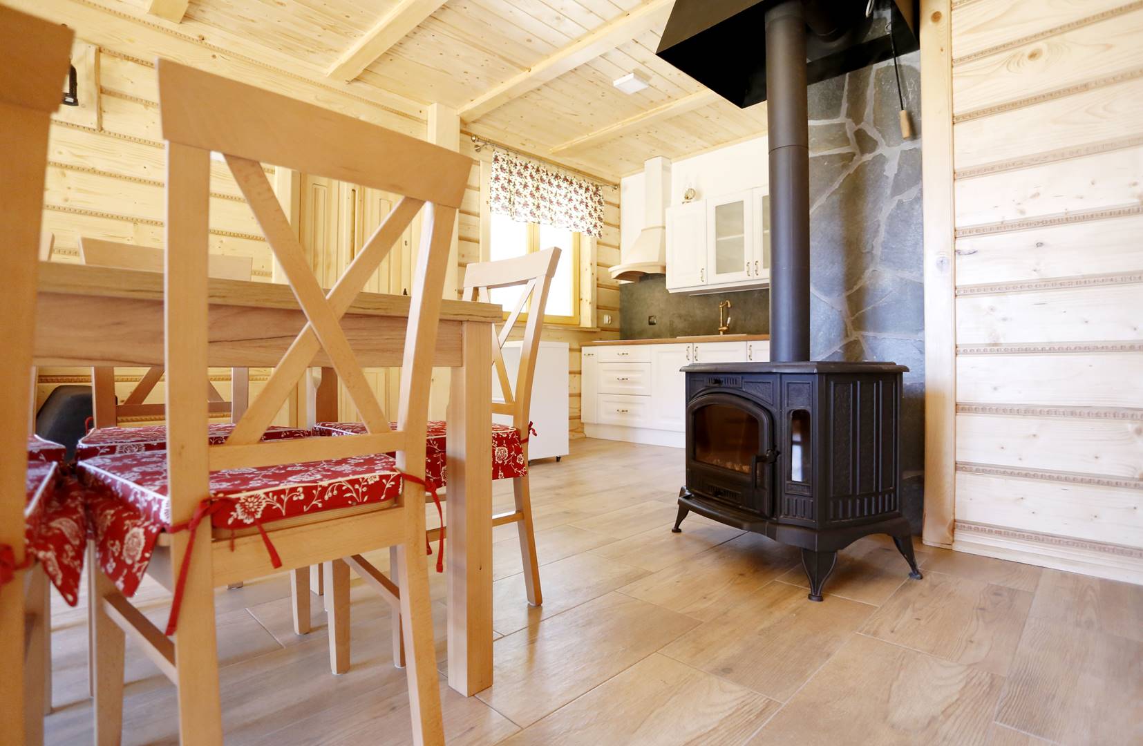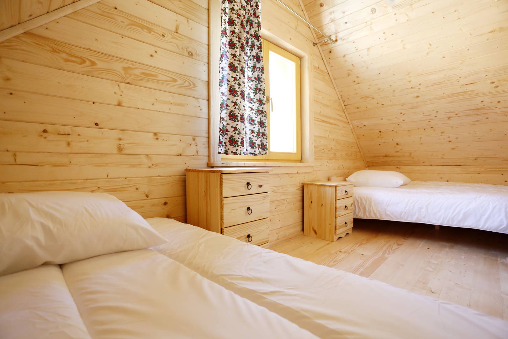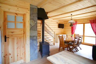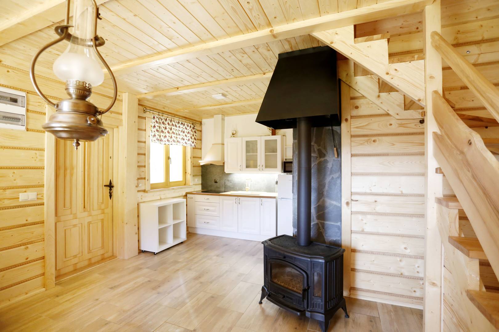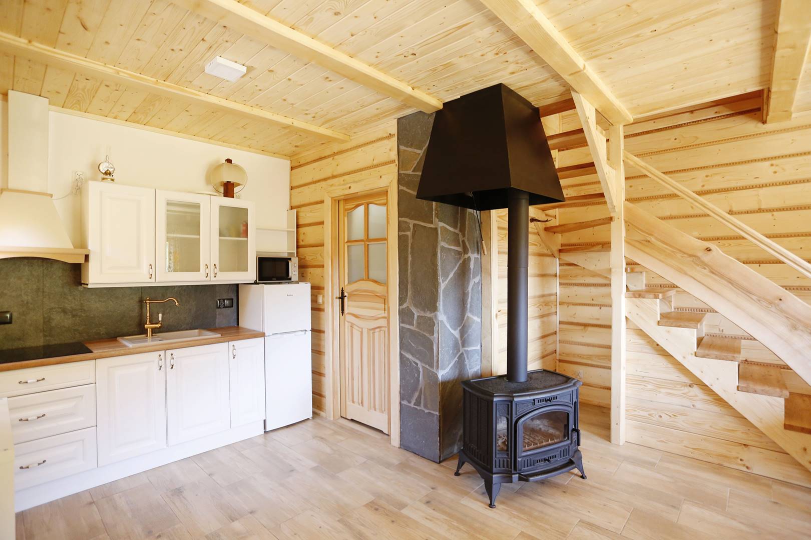 Oferujemy dwa nowe domki. Rok budowy domków 2021. W każdym domku znajduje się kuchnia z aneksem, łazienka z wc, dwa pokoje (4-osobowe i 2-osobowe). W środku znajdują się kominki, telewizja i internet. Wygodny dla pobytu do 6 osób. Cena za dobe: od 450zł. Doba zaczyna się od godziny: 16:00 (dnia przyjazdu) do godziny 10:00 (dnia wyjazdu).