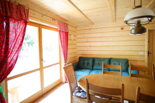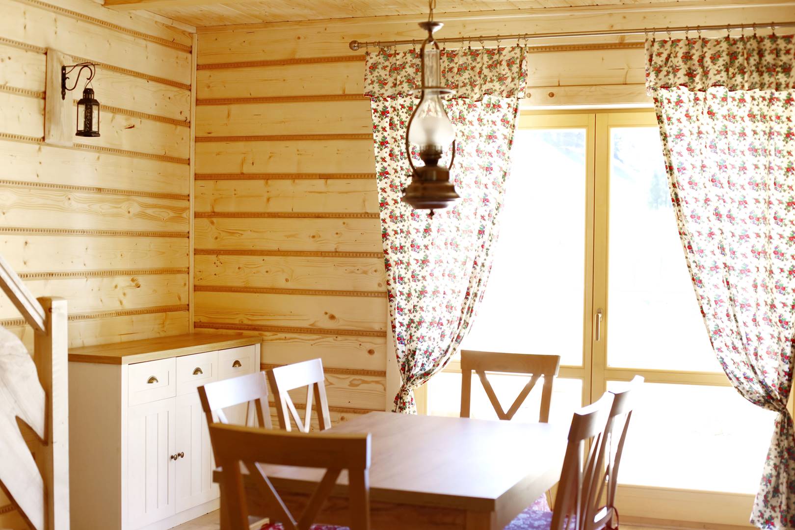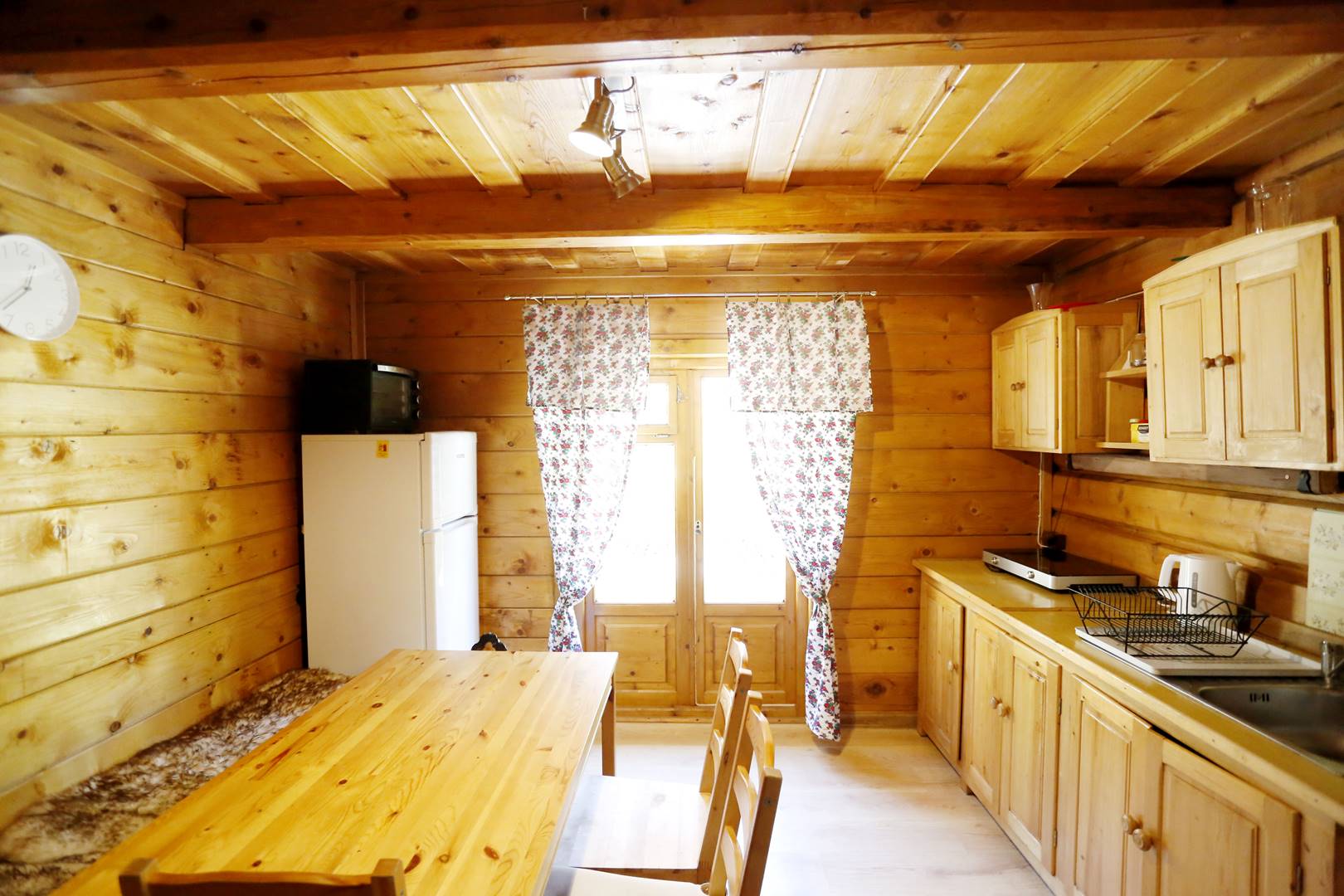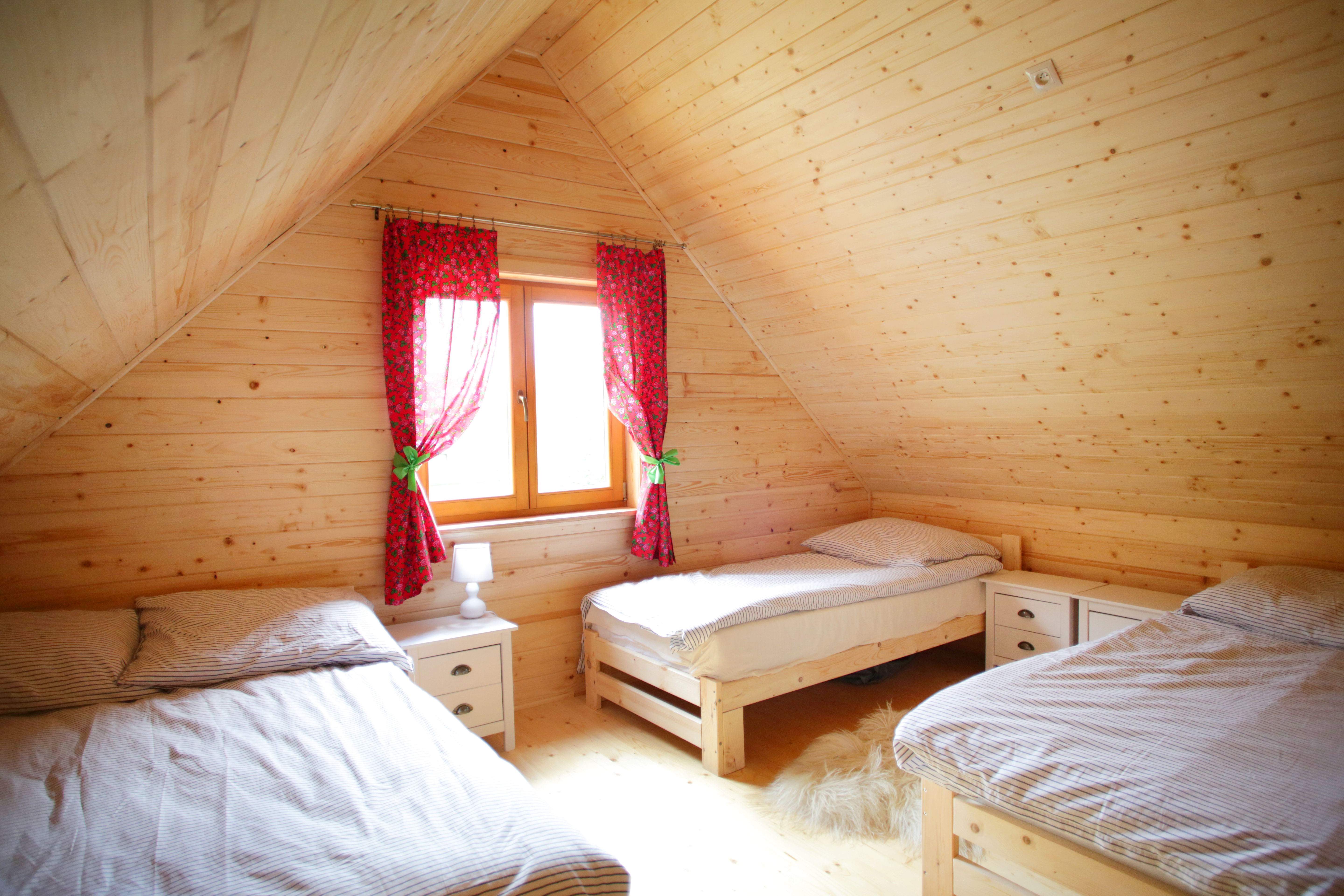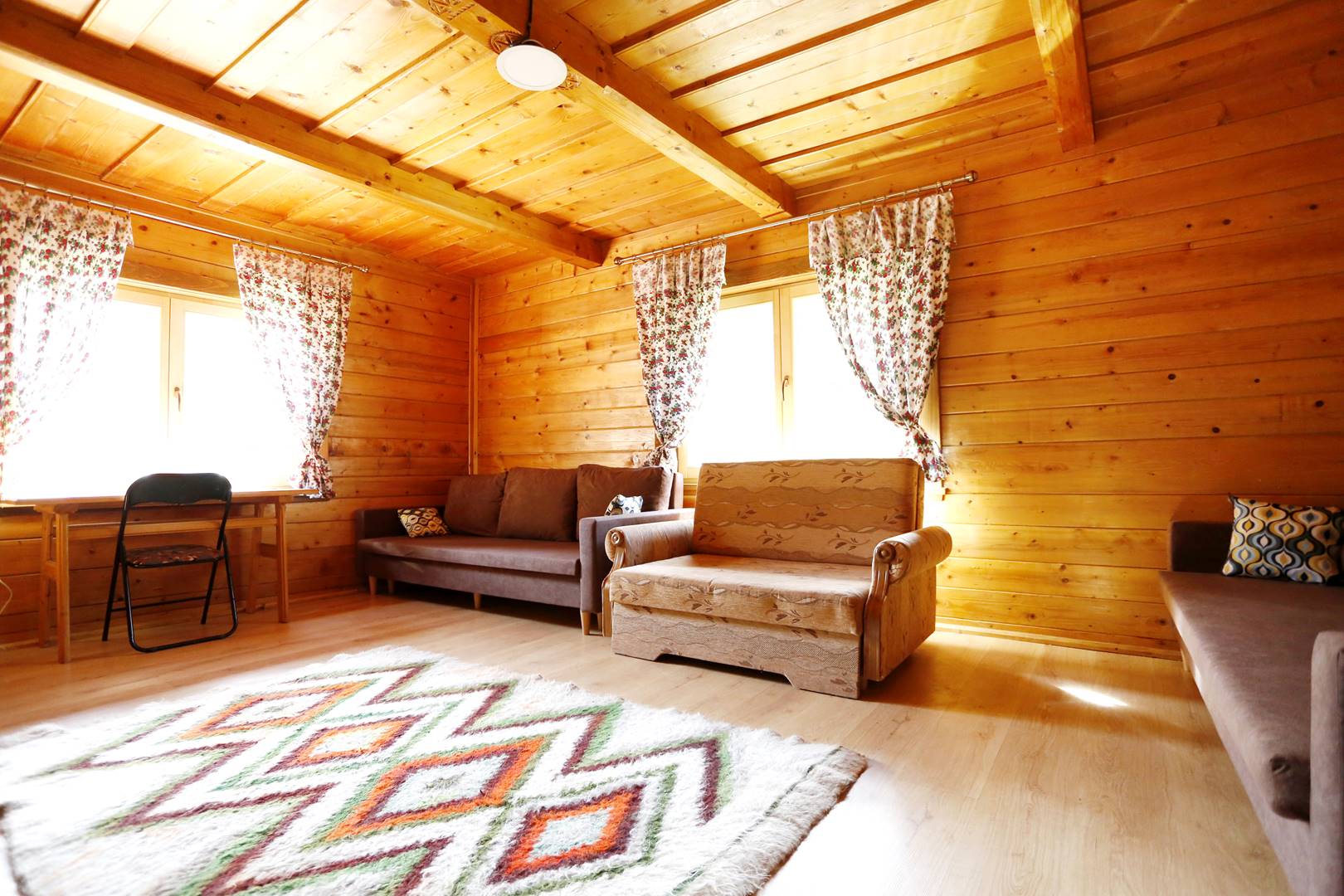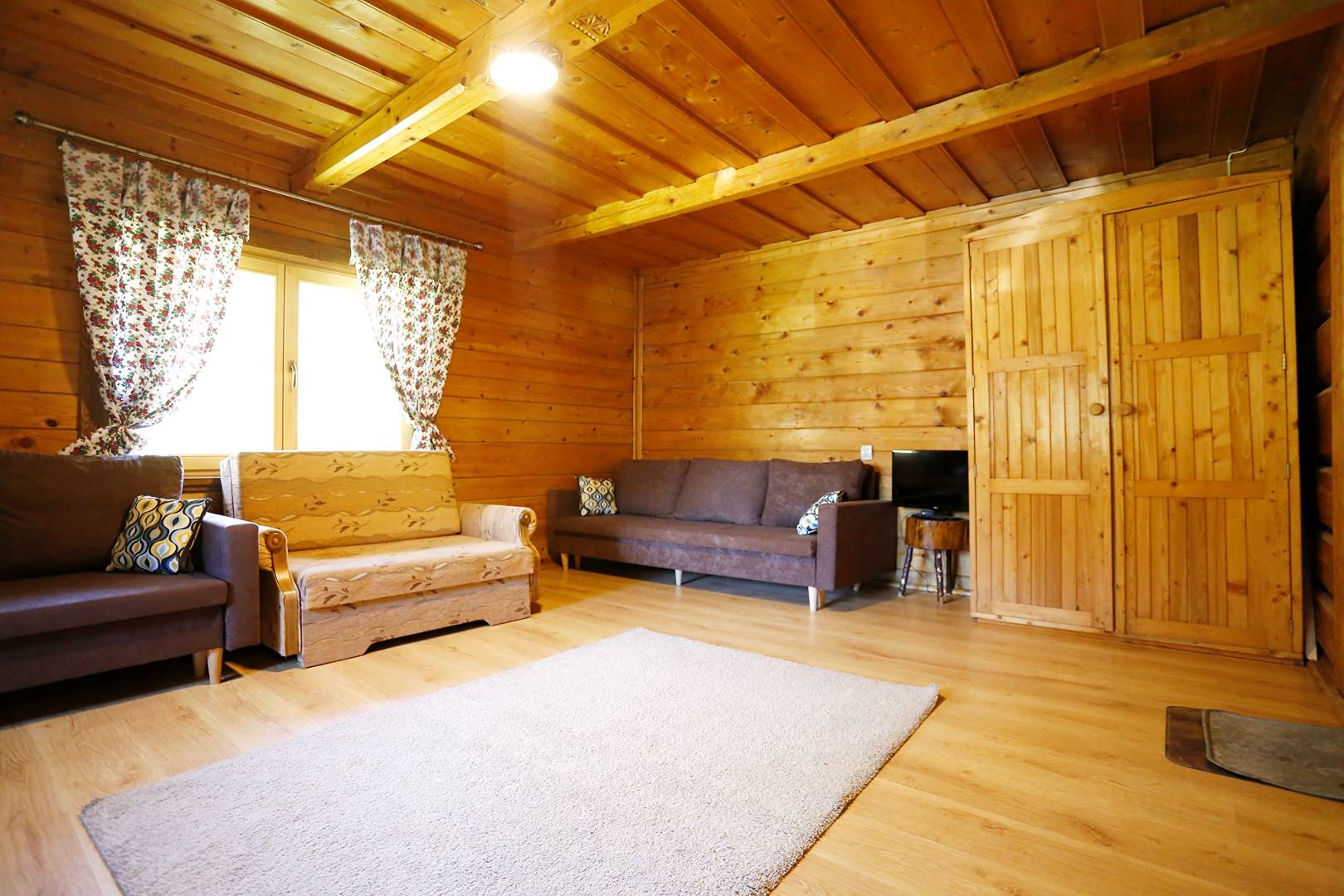 Oferujemy dwa nowe domki. Rok budowy domków 2021. W każdym domku znajduje się kuchnia z aneksem, łazienka z wc, dwa pokoje (4-osobowe i 2-osobowe). W środku znajdują się kominki, telewizja i internet. Wygodny dla pobytu do 6 osób. Cena za dobe: od 450zł. Doba zaczyna się od godziny: 16:00 (dnia przyjazdu) do godziny 10:00 (dnia wyjazdu).
